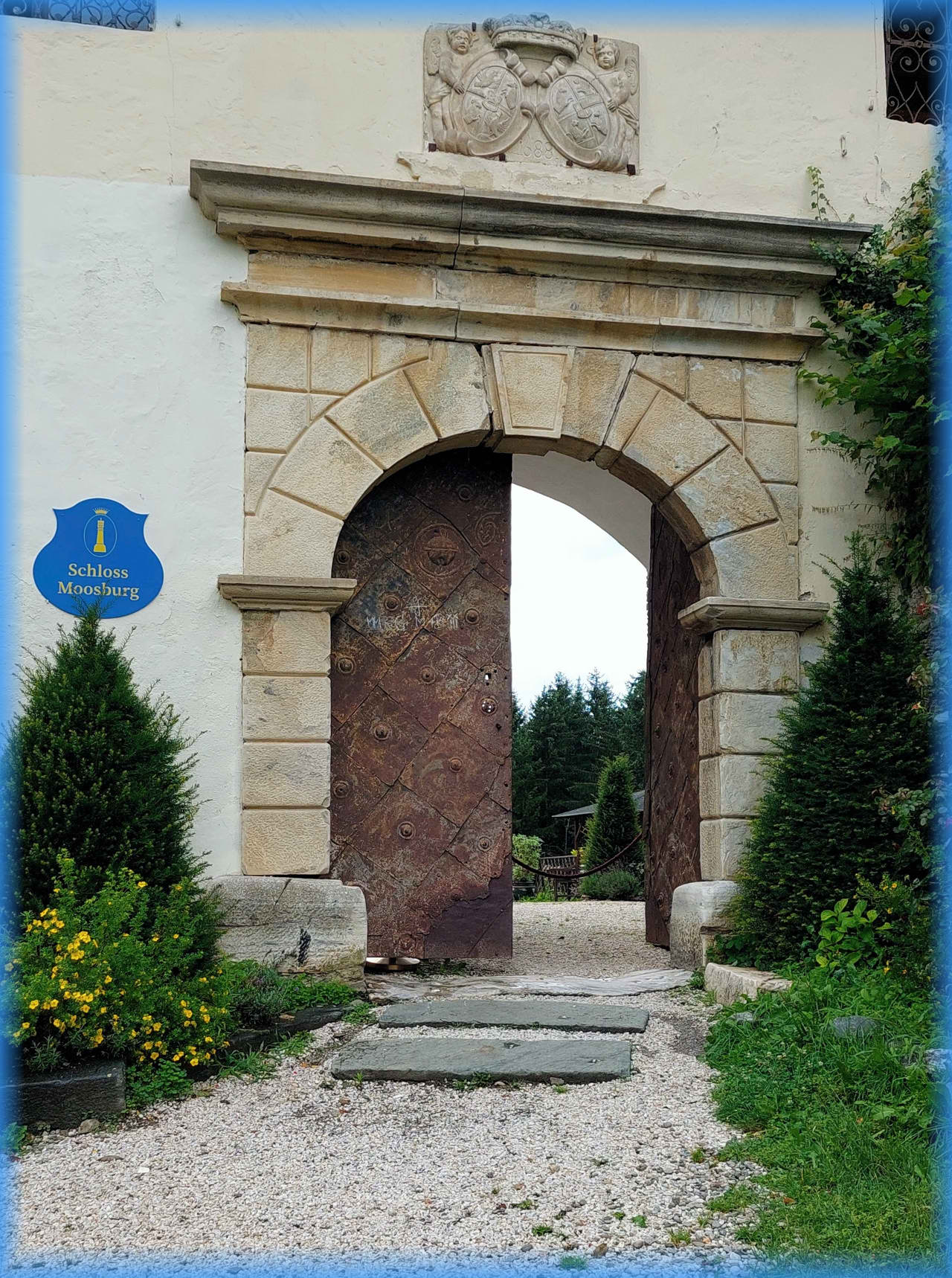 Sehenswertes Quaderportal mit Doppel-Wappen am Eingang des im Stil der Spätgotik errichteten Schlosses. | |||